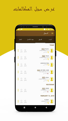 * سجل المكالمات - عرض شامل ودقيق لسجل المكالمات مع مصدر الدولة القادم منه الأتصال