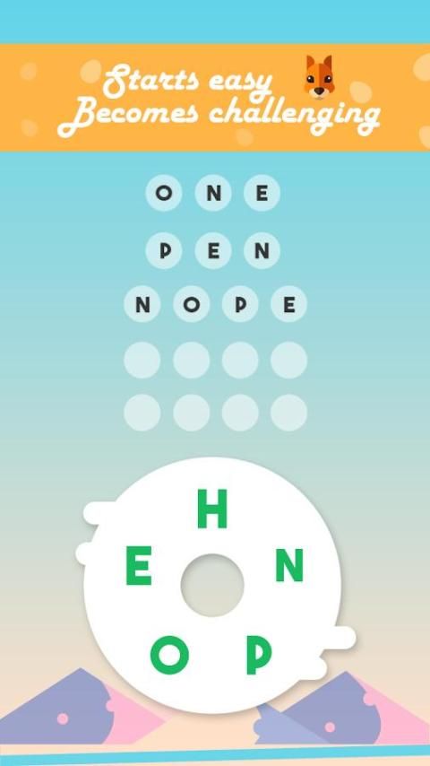 - حرك إصبعك على الحروف المختلطة عموديا، أفقيا، بشكل مائل أو حتى بطريقة دائرية لتشكيل الكلمات. لعبة الجناس الناقص التي يمكنك أن تستمتع في أي مكان.