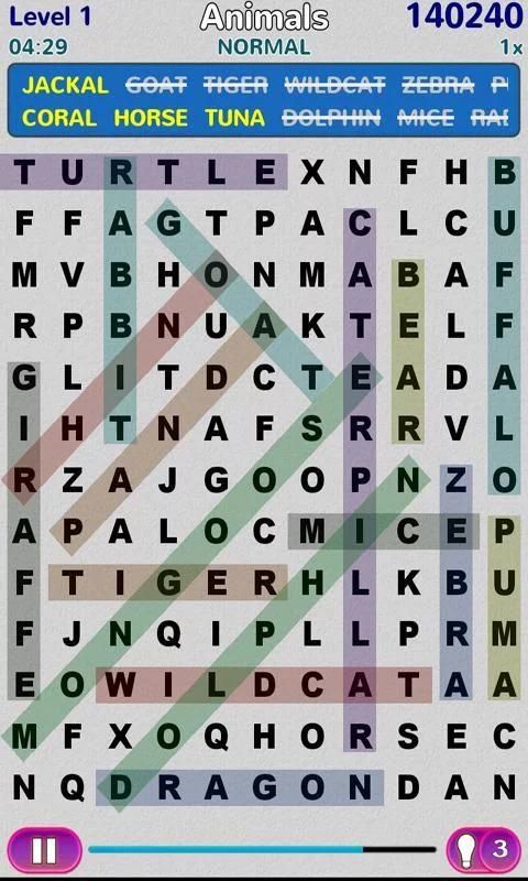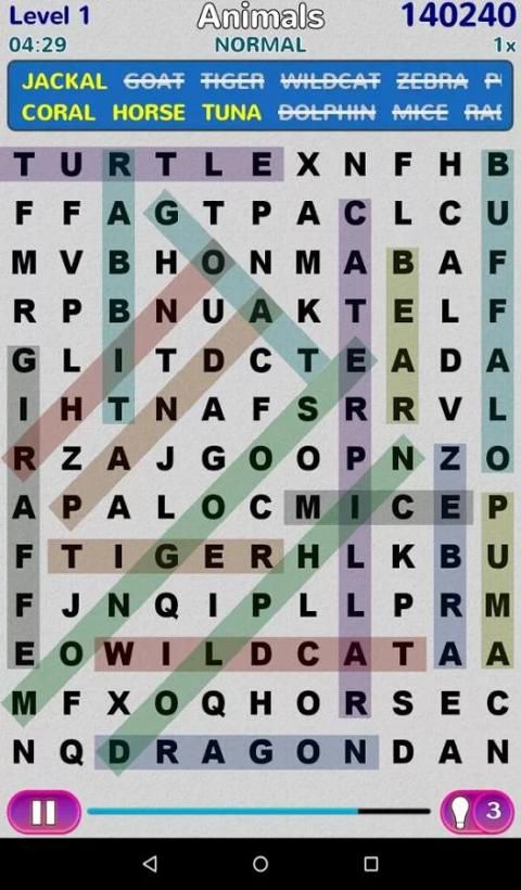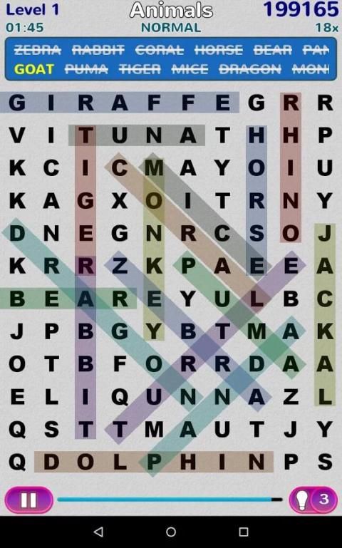 البحث عن الكلمات في القائمة لإكمال المستوى.