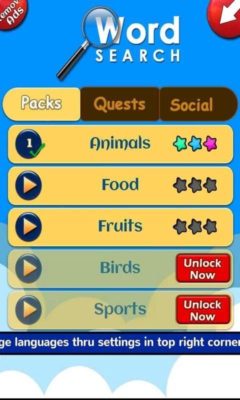 - Unlocks packs after completing 50 levels in previous pack.