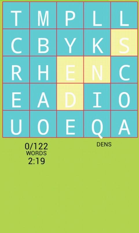 كنت تلعب مع إما 4X4 أو 5X5 المجلس. على متن 4X4، يجب أن تكون الكلمات لا يقل عن ثلاثة رسائل طويلة. على متن 5X5، يجب أن تكون الكلمات لا يقل عن أربعة رسائل طويلة. الكلمات التي لديها ثلاثة أو أربعة أحرف تستحق نقطة واحدة. كلمات تعد تستحق المزيد من النقاط. ويتم اختيار الكلمات من القاموس إما الولايات المتحدة أو المملكة المتحدة الإنجليزية. لا تحسب أسماء الأعلام في هذا الإصدار اختبار هجاء كلمة البحث اتصال اللغز.