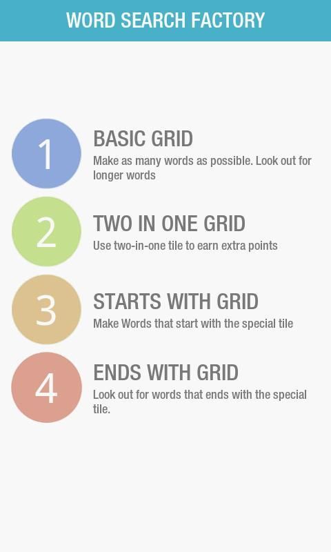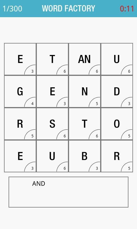 تعزيز المفردات الخاصة بك مع عدد غير محدود من القاموس كلمة البحث puzzles.Word مصنع هي لعبة تعليمية رائعة مع شبكة من مكعبات 4X4. ربط مكعبات العثور على العديد من الكلمات ما تستطيع.