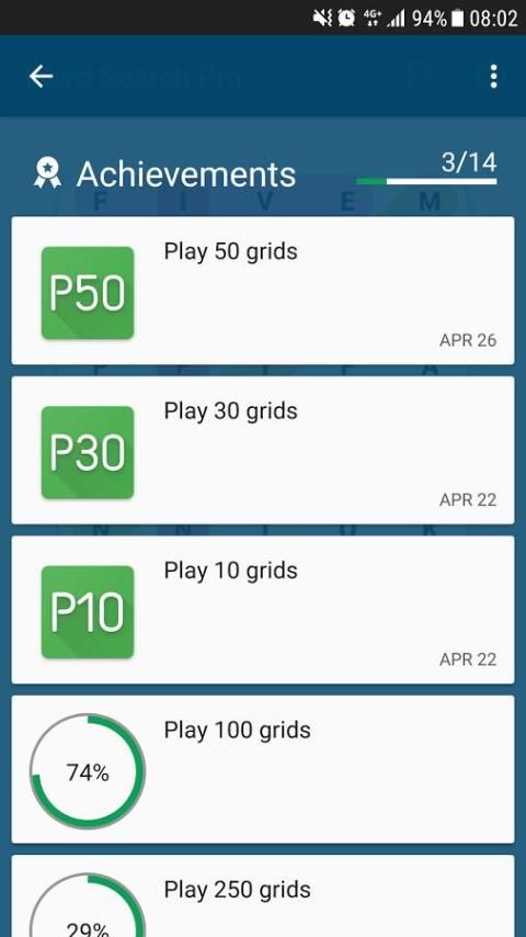 - 14 انجازات لفتح في Google Play الألعاب (لعب 50 شبكات إلى 1000 الشبكات وحل 10 شبكات إلى 1000 الشبكات)