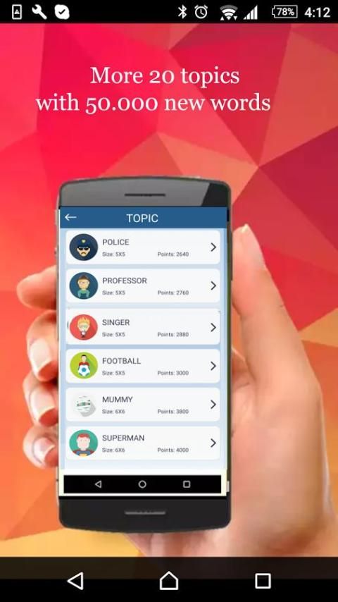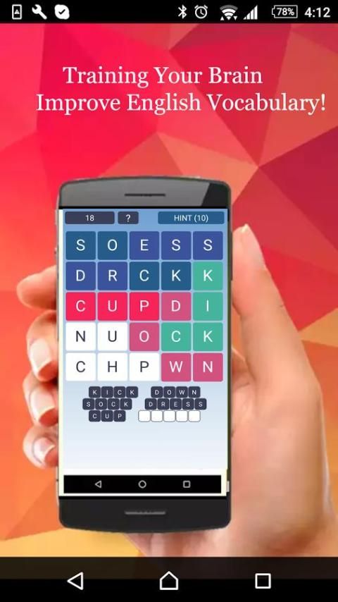 هذا التطبيق هو كلمة الألغاز الدماغ لعبة، من السهل العثور على الكلمات الخفية. حجم وعدد من الكلمات زيادة ما تقومون به. انها تساعدك على أن تصبح مكتشف كلمة .Wherever يمكنك تحسين لغتك الإنجليزية skills. المفردات