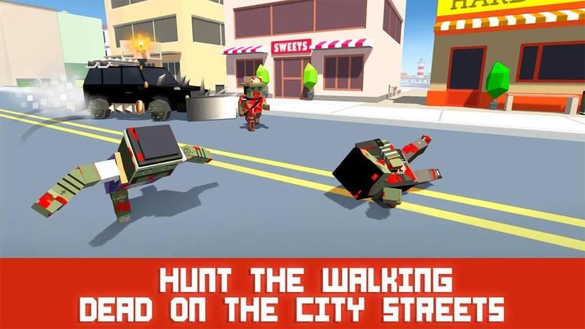 قيادة السيارة عبر التضاريس بكسل ولا تشعر بأي رحمة للميت يمشي، واطلاق النار عليهم قبل أن يتمكنوا من الهجوم عليك والمتعة! كسب نقاط عن كل عدو دمرت وشراء أسلحة جديدة أو تخصيص سيارتك!