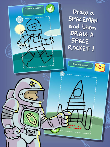تطوير ثقة رسم أثناء استكشاف المجرة.ارسم في طريقك للأجانب الماضية، والليزر والحفر النار أثناء استخدام مهارات حل المشكلات الخاصة بك!