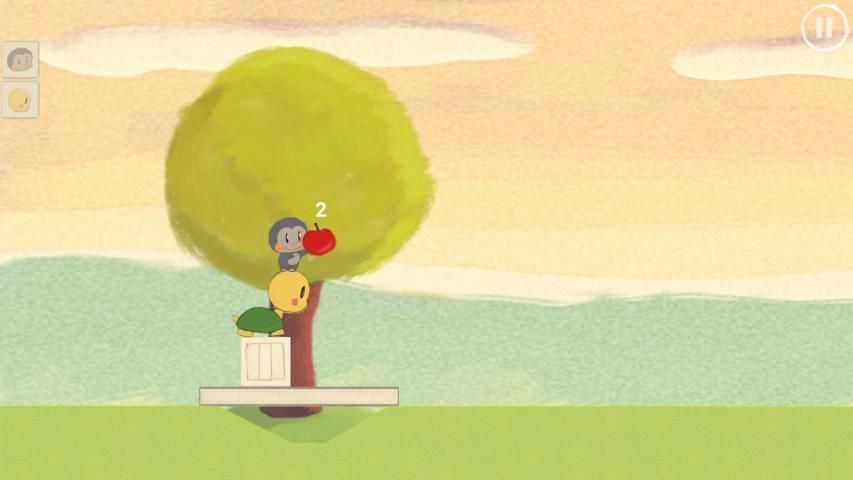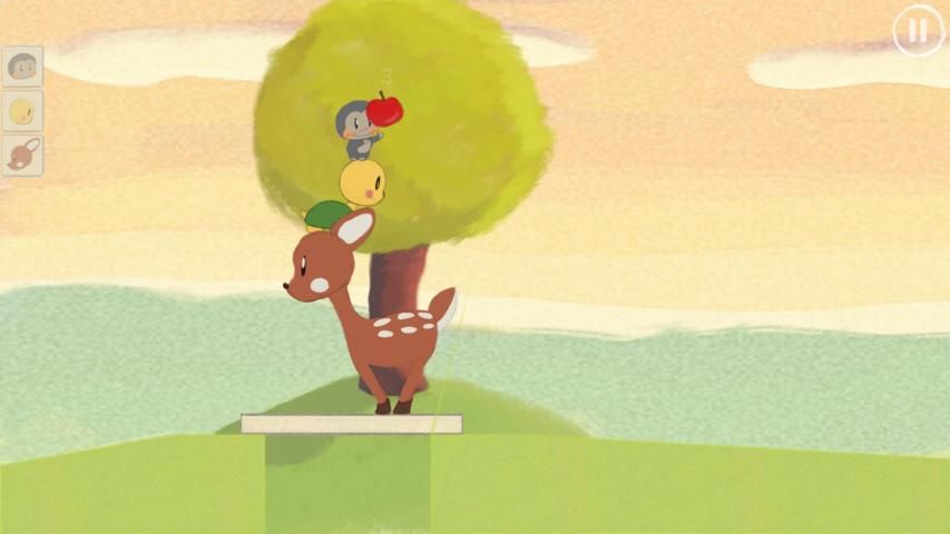 كومة الحيوانات لطيف على رأس كل منهما الآخر للوصول إلى التفاح في هذه المغامرة اللغز الفيزياء الخصبة.
