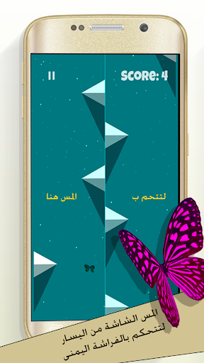 - اللمسة على اليمين تتحكم بالفراشة اليسرى
