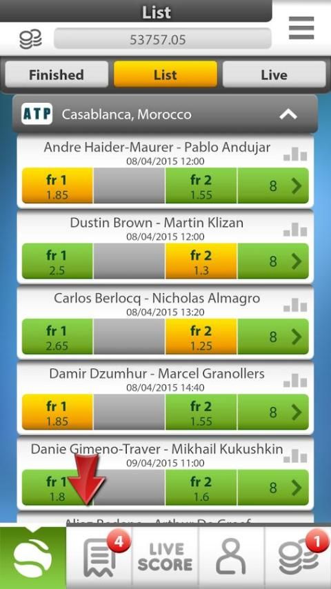 تحميل التنس بطولات التطبيق عام 2015، المراهنات الرياضية التطبيق، ورهان بلا حدود على جميع 2015/2016.