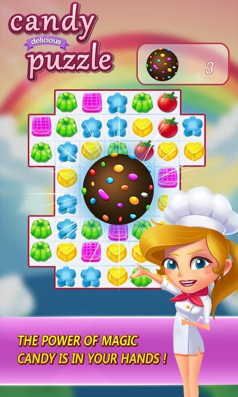 يبدأ الحلوى لغز لذيذ كما بسيطة المباراة الثلاث لعبة المجلس ويزيد تدريجيا الصعوبات التي تضاف العقبات ومستوى الأهداف يصبح أكثر صعوبة.