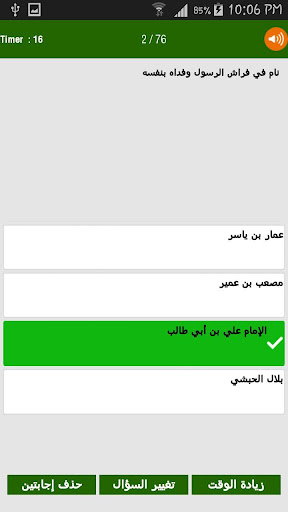 كل سؤال تجد تحته أربع إجابات عليك اختيار واحدة منها.