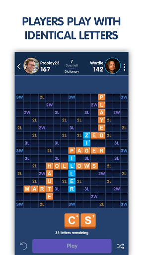 The game offers unique features, such as both players having identical letter racks, random and multiple POW wild letter tiles to promote competition, two game modes, and two board sizes. In this way POW eliminates the element of chance found in other word games, allowing the skill of each player to come to the fore.