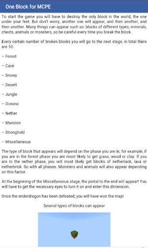 This is a map in which you will start in one block, from this block you will have to get everything you need to go and kill the enderdragon.Feel free to contact us when you have some problem.
