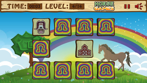 Pony Memory is a chance to show your memory skills, so let the fun begin with only few memory tiles and wait for the real challenge when you’ll have to face up even 48 tiles. The Pony Memory game is a quiz that has 14 levels and contains items connected with the most beautiful animal in the world, the gorgeous horses and ponies. Touch a tile and flip it. Then touch on another tile and try to make a match with the one that is already open. Match all tiles during the given time limit, remove them from the board and advance onto the next level. It keeps you alert and concentrate all the time, at the same time fun to play and educational too. However, don’t worry if you fail, running out of time, because you have infinite lives and you won’t have to begin form the very first level. As you progress the number of the tiles will increase, but so will the time limit. You'll gonna love playing this cool Pony Memory game. It will keep you entertained for hours, develop and improve your memorization, make you enjoy the adorable music and graphics. Pony Memory is the extra challenge that you’ve been searching for, now download it and have tones of fun!