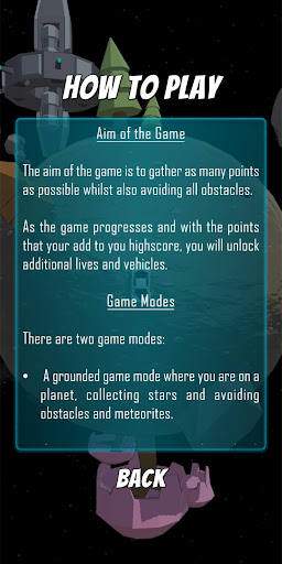 • وضع اللعبة الأساس حيث تكون على كوكب ، وجمع النجوم وتجنب العقبات والنيازك.