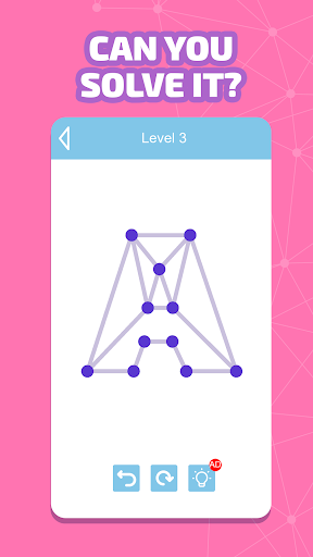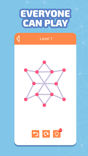 One line drawing puzzle game is a simple way to sharpen your memory by spending a few minutes daily. Play this classic fun game anywhere—at work, at home, in a park, on a bus, etc. Being a fan of drawing games, get ready to test your mind with an addictive figure draw-puzzle game. Our line-draw game is ideal for both kids and adults. Show your expertise by draw the figure with a single stroke. There are no time restrictions when playing One-Line Levels, so don't rush. Take your time.