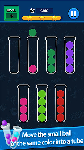 It's simple, but it's fascinating! Just click the ball, move the ball to another test tube, and rearrange all the small balls of the same color together.