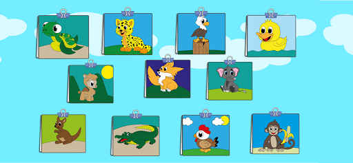 نسر ، كلب ، قطة ، أرنب ، ثعبان ، بومة ، كنغر ، فيل ، دولفين ، دجاج ، فرس النهر ، تمساح ، أسد ، لاما ، قرد ، جاكوار ، بطة ، أصبع ، ثعلب ، سلحفاة ، بقرة.