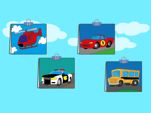 سيارة إسعاف ، شاحنة إطفاء ، شاحنة سحب ، سيارة سباق ، سيارة شرطة ، سيارة رياضية ، صيغة 1. مروحية ، شاحنة عملاقة ، سفينة ، حافلة ، دبابة.