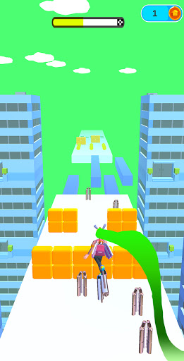 هناك قضبان على السطح حيث يتعين عليك نشر ساقيك والانزلاق، والجدران للقفز، والعصا لتحمل التوازن والمنصة الضخمة في الانتظار في النهاية الطريق. أطول كعبك هي، والأسهل سيكون الهروب من الجدران.