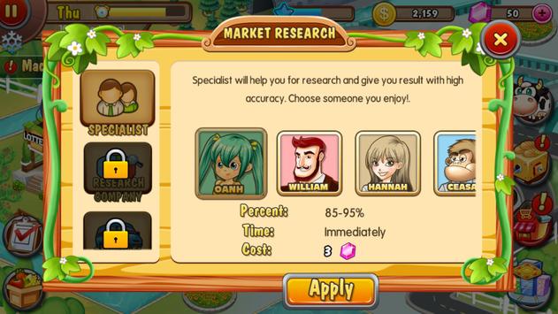 crops, faster machines or a faster factory. Start selling agricultural products & as your farming career and experience grows; you’ll be able to be the proud owner of one of the top farms in the game city!
