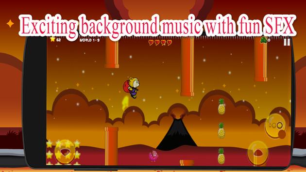 ♥ Achieve scores by jumping on the monsters and collecting stars and fruits to replenish your lives.