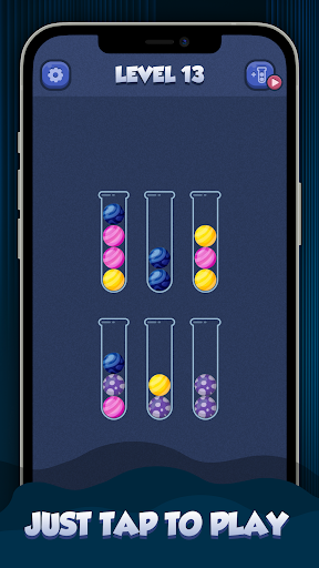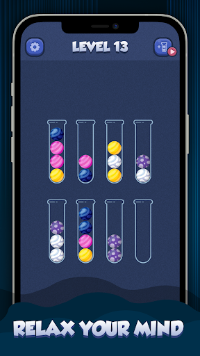 Ball Sort rule is very simple: Just tap the balls and sort the colored balls in the tubes until all the same colors are together in the tube.