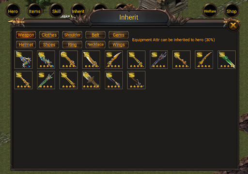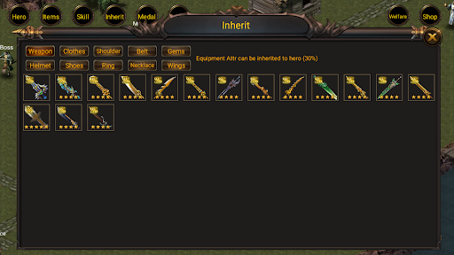 تبدأ اللعبة بسيف خشبي واحد فقط ، تهدف جميع الرؤساء.المعدات.