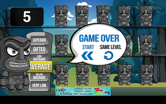 The Totems of "El Mundo Perdido" are back! Totems Memory is the Ultimate Memory Test. Measure your memory level in seconds with this awesome game. When most memory games can become easy and boring to some, Totems Memory is guaranteed to take the biggest brain to the limit as it will provide you a fresh new sequence every time. The most you push it, the harder it will become. Please try Totems Memory and support this indie game development company. Thank you very much!
