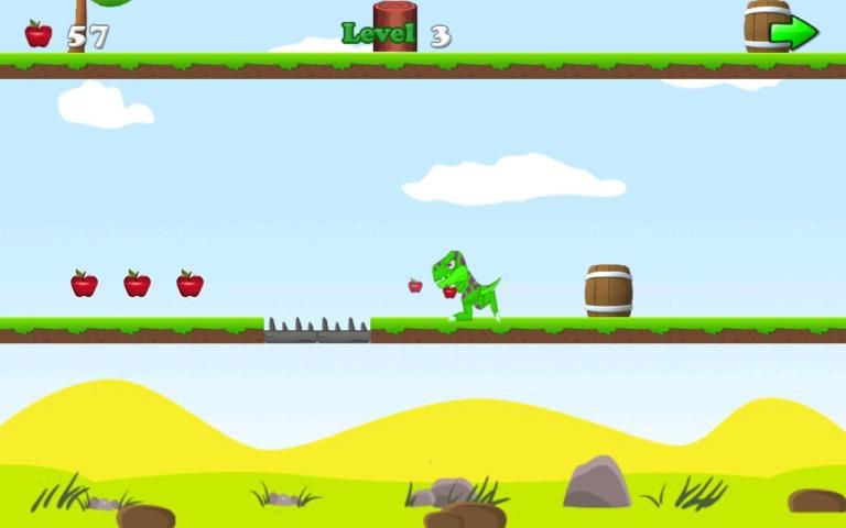 السيطرة على ديناصور الجياع وجمع أكبر قدر من التفاح ما تستطيع في هذا العالم.