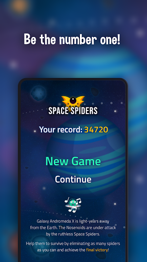 Join in the battle against the Space Spiders! Defeat the spiders by taping on them, or get help from the Nosenoids and the Rockets in Space. The goal of the game is to get to the Spider nest, defeat as many spider as possible and gather as many points as possible!