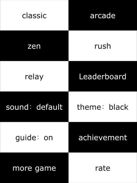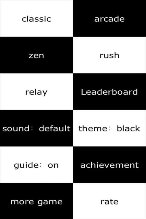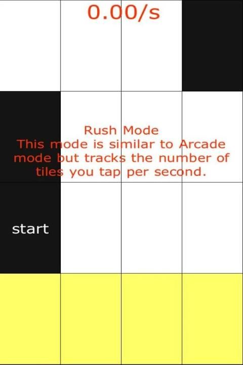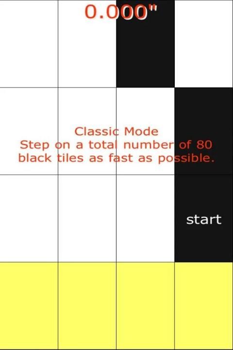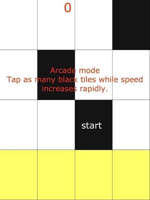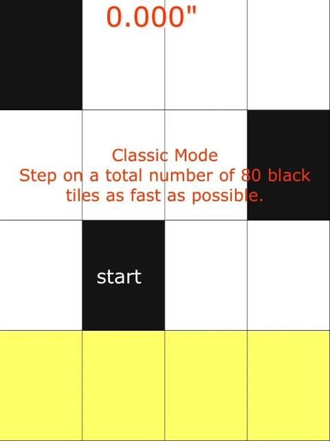 البيانو البلاط هو ممر لعبة نموذجية والتي من السهل على التعلم ويصعب الرئيسي. تماما مثل شعبي فلابي بيرد اللعب على نحو سلس، والإدمان وسريع. والهدف الرئيسي هو للتأكد من أنك لا الاستفادة من البلاط الأبيض، إلا واحدة سوداء. كانت تسمى اللعبة أولا: لا اضغط على بلاط أبيض "قبل أعيدت تسميته لبلاط البيانو. وكان هذا أيضا اللحظة التي أضيفت المؤثرات الصوتية البيانو.