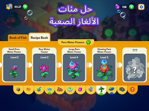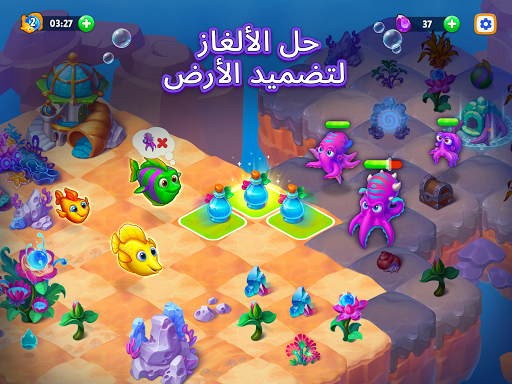 ابدأ في تطوير العناصر لتنظيف قاع البحر وافتح مستويات صعبة وممتعة جديدة. استمتع برؤية زخارف حوض السمك المريحة. فكّر مسبقًا في تحركاتك، وغيّر مظهر القاع وطوّر حيواناتك الأليفة المزعنفة. ضع المحيط بأكمله في حوض السمك الخاص بك!