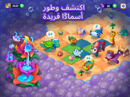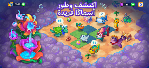 قم بحل ألغاز الدمج الصعبة لفتح أنواع جديدة في عالم الأسماك هذا وإنمائها وترقيتها. نار🐠، توهج🐟، وحل🐡 … كم عدد الحيوانات الأليفة المزعنفة الحيوية التي يمكنك جمعها في حوض الأسماك السعيد الخاص بك؟