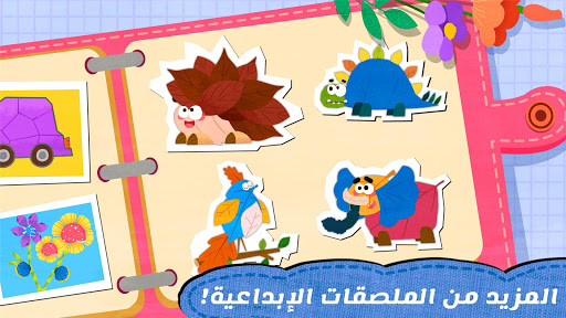 اصنع ملصقات مع صغير الباندا! يمكنك تصميم جميع أنواع الملصقات الإبداعية: فساتين الأميرة المصنوعة من بتلات الزهور والحيوانات المصنوعة من أوراق الشجر. يمكنك أيضًا استخدام هذه الملصقات لابتكار قصتك الخاصة... سوف تحبها!