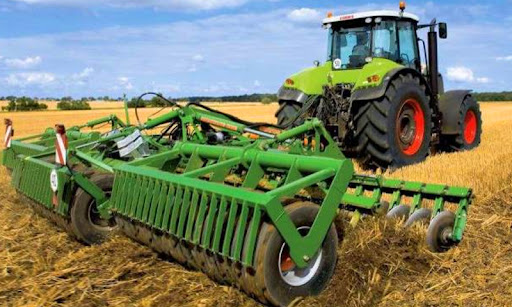 Drive heavy duty farming tractor with modern ploughs, Chisel plow, Rotary tiller, sub soiler,destoner,harrow and other modern agricultural tractor farming machine game tools.