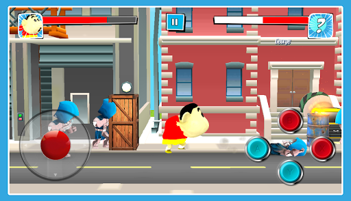 * في هذه وزارة الدفاع سوف تلعب مع جميع الشخصيات!يمكنك أيضا اختيار الموسيقى التصويرية الليلية Shinchan خلال قتالك.