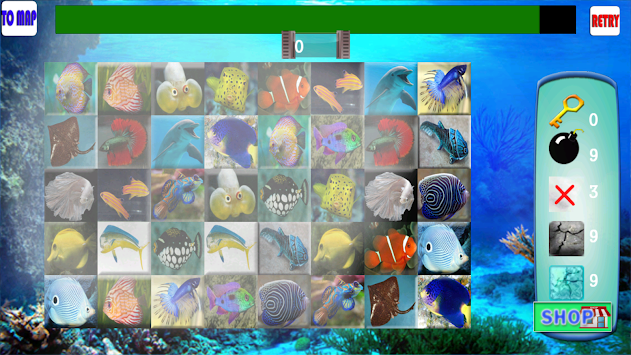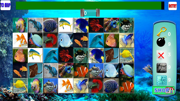 How to play : Connect 2 identical fishes to get item and beat enemies !