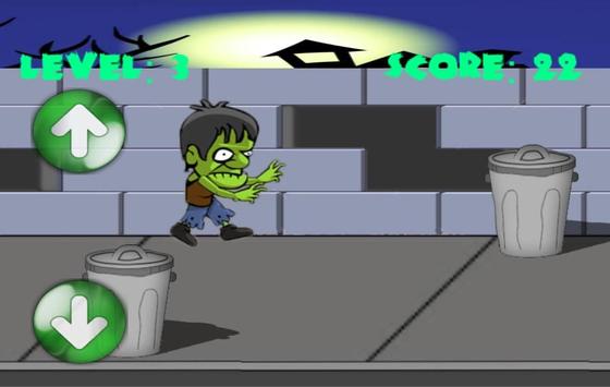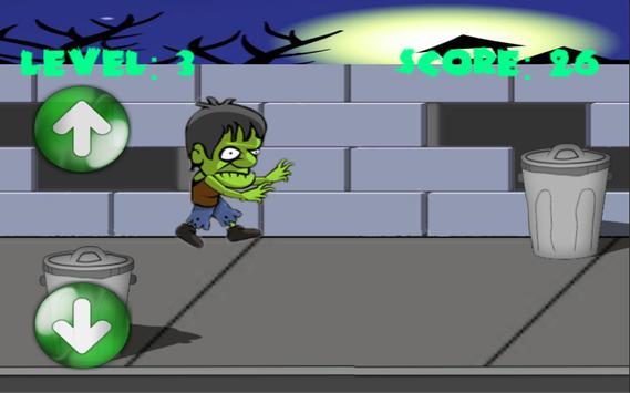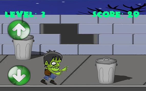 Your goal in this game is walking down the sidewalk and dodge the garbage cans to prevent collisions. Walk down the sidewalk and be quick in control to not let the zombie bump in the garbage cans