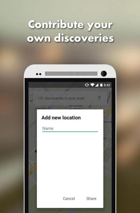 هذا التطبيق يعلن مبدأ "من المستخدمين، للمستخدمين". تتبع هذا المبدأ، يمكنك إضافة الاكتشافات الخاصة بك ومعرفة جميع المساهمات من المستخدمين الآخرين على الخريطة.