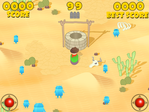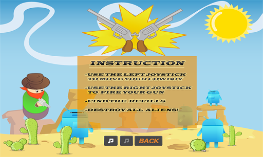 Alien Versus Cowboy is a great gore style arcade game. Move your hero around and trying to stay alive for as long as possible. Use the dual joystick controls to move around and shoot anything that comes near you.