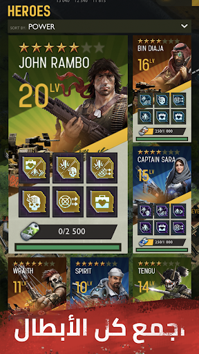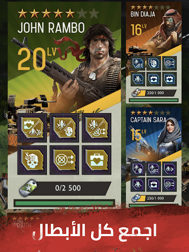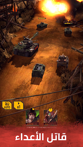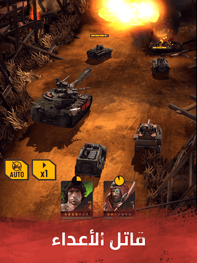 انضم إلى جون رامبو في معركة السيطرة على العالم. "رامبو:القوة الضاربة" هي لعبة إستراتيجية من نمط MMO للأجهزة الذكية، اللعبة مليئة بالإثارة تدور أحداثها في مستقبل ما بعد الكارثة العالمية. قم ببناء قاعدتك، واجمع الأبطال الأسطوريين، واذهب إلى الحرب بترسانة مرعبة من المركبات. انشئ التحالفات وتعلم القتال وشارك بالأحداث العالمية. العب "رامبو: القوة الضاربة" الآن للحصول على فرصتك "للعيش لشيئ او للموت لأجل لا شيء".