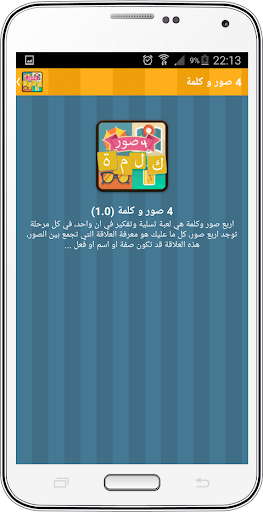 أربع صور كلمة واحدة : هي لعبة تسلية وتفكير في ان واحد، في كل مرحلة توجد اربع صور، كل ما عليك هو معرفة العلاقة التي تجمع بين الصور، هذه العلاقة قد تكون صفة او اسم او فعل ... لتخمين الكلمة الصحيحة