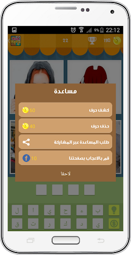 تضم لعبة أربع صور كلمة واحدة ثلاث وسائل مساعدة :