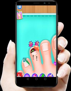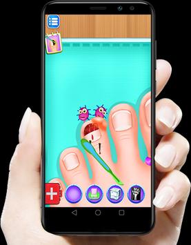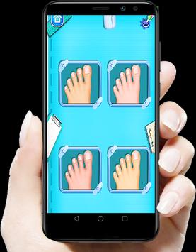 لعبة عملية جراحية للقدم وبالتحديد للأصابع، في بداية اللعبة تختار علاج قدم البنت أو علاج قدم الطفل، أو علاج قدم الرجل الكبير الأب، أو علاج قدم الطفلة الصغيرة، بعدها تدخل للقسم وتغسل قدم وأصابع المريض.