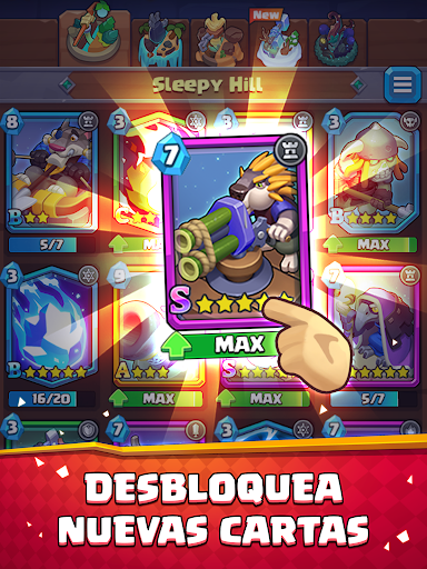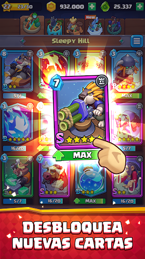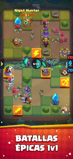 Diferentes cartas con poderes distintos: ¿poder mágico o físico, rol de ataque o apoyo, armas de corta o larga distancia? Decídete y construye la baraja de cartas más poderosa para derrotar a tu rival.