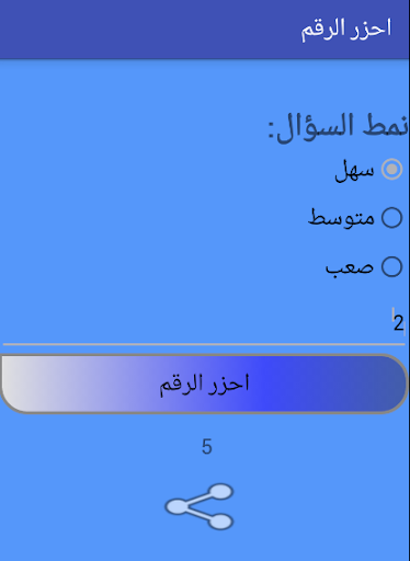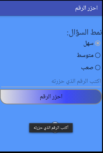 طريقة لعب اللعبة عن طريق اختيار المستوى إما سهلة أو متوسطة أو صعبة ومن ثم كتابة العدد المتوقع