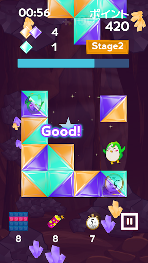 إنها لعبة ألغاز حيث يتم دمج لون اللوحة الرباعية التي يقع من الأعلى، ويصنع شكل الماس من نفس اللون ومحو.