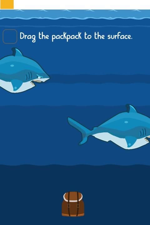 ويلسون، ونحن نعلم تحب الغوص في البحر، ولكن هناك الكثير من أسماك القرش الجائعة! هرب! تجنب اسماك القرش للوصول إلى الشاطئ!