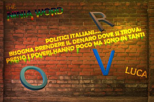 The Ninja Word is the first video game that rewards you with a 'unique idea: write me and every month will be drawn from different winners. The winners will receive gift their name and their message uncensored writing style murals on the background of the official version of the game, so when all players will upgrade the system you will see. You'll be to structure the game's graphics with your thoughts and your emotions. The Ninja Word changes the rules and breaks down all the limits of normal games. If you are a business owner you want to know I give you a unique service in the world: contact me, choose the background, together we develop your idea and put your slogan and your logo in the game-style murals. Enter the game and enter the world!